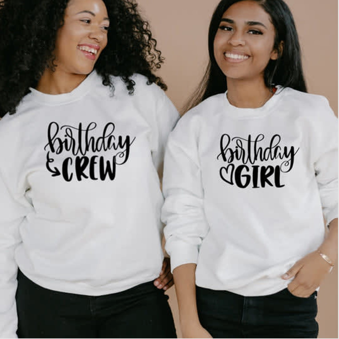 Get ready to celebrate in style with the Birthday Girl and Her Crew T-shirt – the ultimate party tee for any birthday celebration. Whether you're heading out with your besties for a night on the town or hosting a birthday bash with your closest friends and family, this T-shirt is the perfect way to show off your birthday spirit and make a statemenT. Available in a range of sizes, this tee is the ultimate addition to any birthday wardrobe. So gather your crew, slip into your T-shirts, and get ready to celebrate another year of life in style